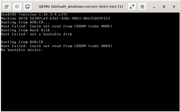 virtctl image-upload dv windows-installer-2022 --access-mode=ReadWriteOnce --force-bind --size=10Gi --uploadproxy-url=https://127.0.0.1:30085 --insecure --image-path=./windows-server-2022.isoNotice the --uploadproxy-url=https://127.0.0.1:30085. That's the NodePort we opened with the kubernetes service resource. More info on the use of --force-bind is in the troubleshooting notes at the end.