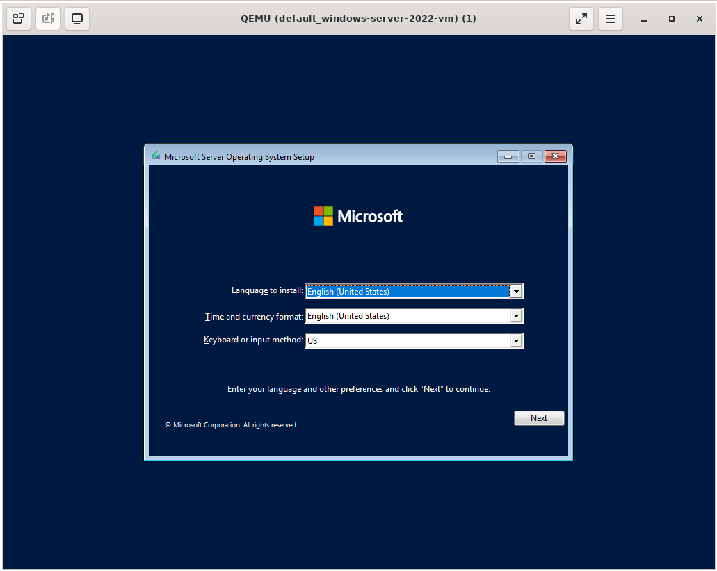 kubectl apply -f https://github.com/krumIO/kubevirt-windows-example/blob/main/examples/windows_server_2022/windows-installer-storage.yaml- Next, apply the VirtualMachine definition.
