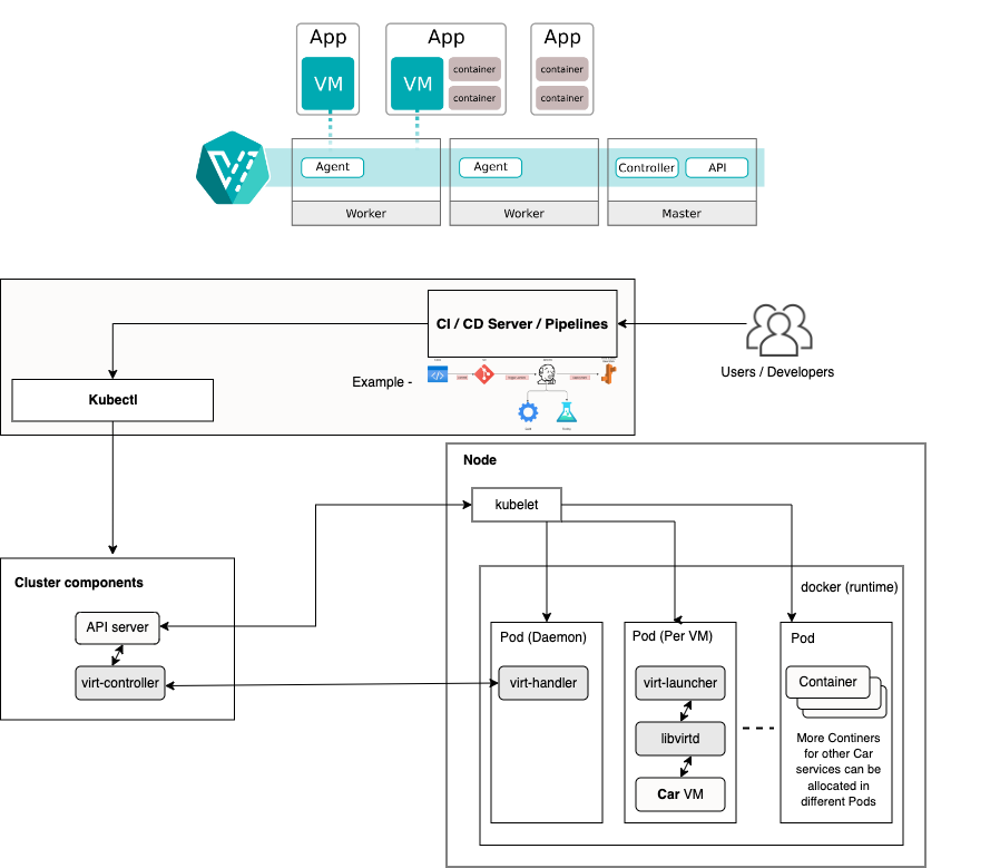 $ kubectl apply -f https://github.com/kubevirt/kubevirt/releases/download/${RELEASE}/kubevirt-operator.yamlYou can check the workloads it creates with kubectl get pods -n kubevirt