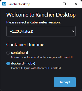 I'm going to walk through a migration for Windows + WSL environments, from Docker Desktop to Rancher Desktop, while keeping docker-compose. For specific instructions for other operating systems, please refer back to the Rancher Desktop Docs